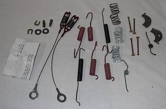 All the correct springs, clamps, washers, clips, etc. required when doing a restoration or simple brake job.